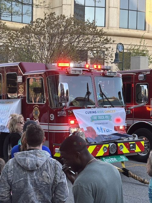 Aflac employees displayed 15 tons of heart when they took part in Curing Kids Cancer’s 12th annual Fire Truck Pull held in downtown Columbia, South Carolina, to raise funds to support the Gamecocks Curing Kids Cancer Clinic at Prisma Health Children’s Hospital — Midlands.